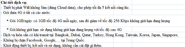 + Trọn bộ thiết bị thuê gồm: Thiết bị phát wifi , Củ sạc, Dây sạc, Pin sạc dự phòng, Ổ cắm điện du lịch đa năng, Bao da.