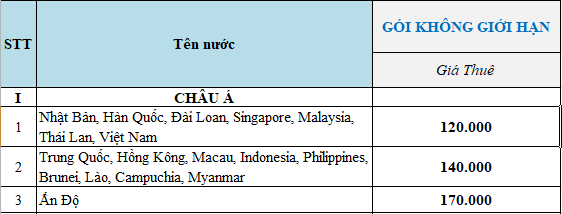 Bảng giá cho thuê wifi quốc tế