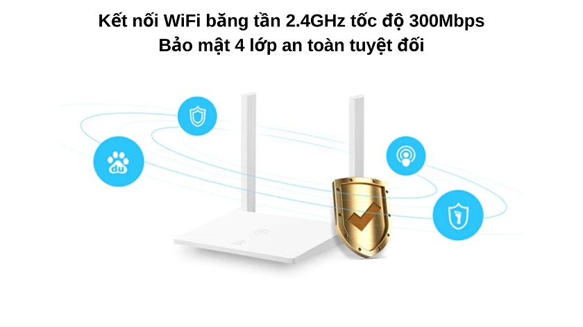 Băng tần WiFi 2.4GHz được tối ưu với tốc độ 300Mbps cho kết nối internet hiệu quả