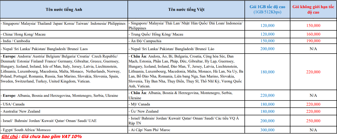 Bảng giá cho thuê wifi quốc tế: