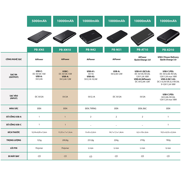 So sánh chi tiết các sản phẩm Pin sạc dự phòng của Aukey