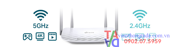 Với tốc độ wifi 300Mbps qua băng tần 2.4GHz và 867Mbps qua băng tần 5GHz đảm bảo khả năng router sẽ hoạt động với hiệu suất cao nhất. Bâng tần 2.4GHz có tốc độ 300Mbps giúp xử lý các công việc yêu cầu băng thông thấp như lướt web, gửi email. Các công đòi hỏi nguồn băng thông lớn như chơi game, xem phim hay live stream sẽ sử dụng băng tần 5GHz với tốc độ 867Mbps.