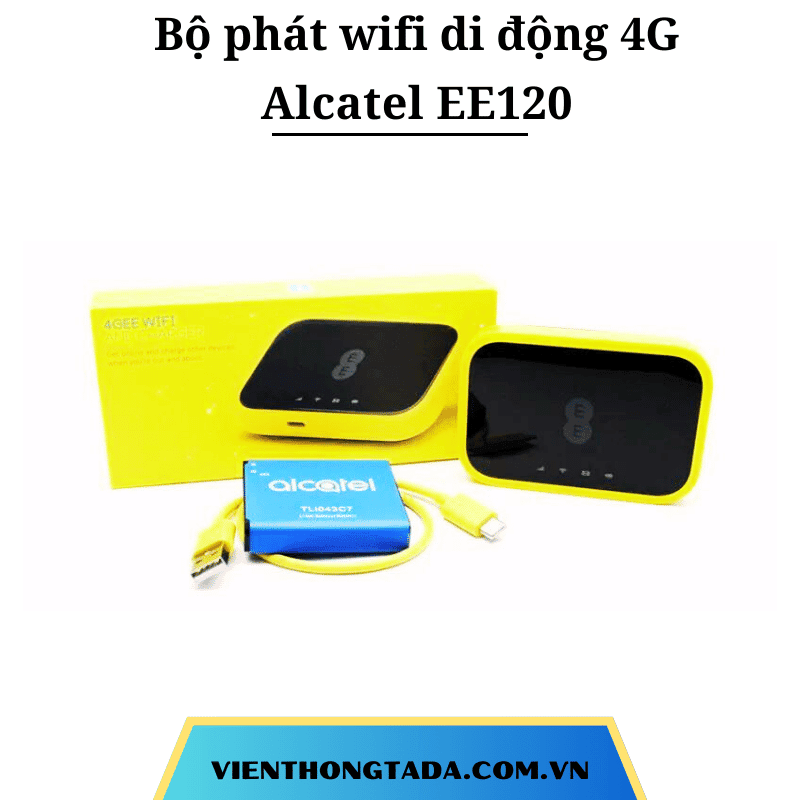 - Bộ định tuyến 4G Alcatel EE120 là một thiết bị nhỏ gọn, nhẹ và tiện lợi, vừa vặn trong túi quần hoặc áo sơ mi của bạn để bạn có thể mang theo bất cứ nơi nào mà không lo việc chiếm diện tích. Với thiết kế hiện đại trong vỏ màu vàng-đen, Alcatel EE120 được làm từ nhựa chất lượng cao, theo tinh thần phát triển mới nhất của công ty.