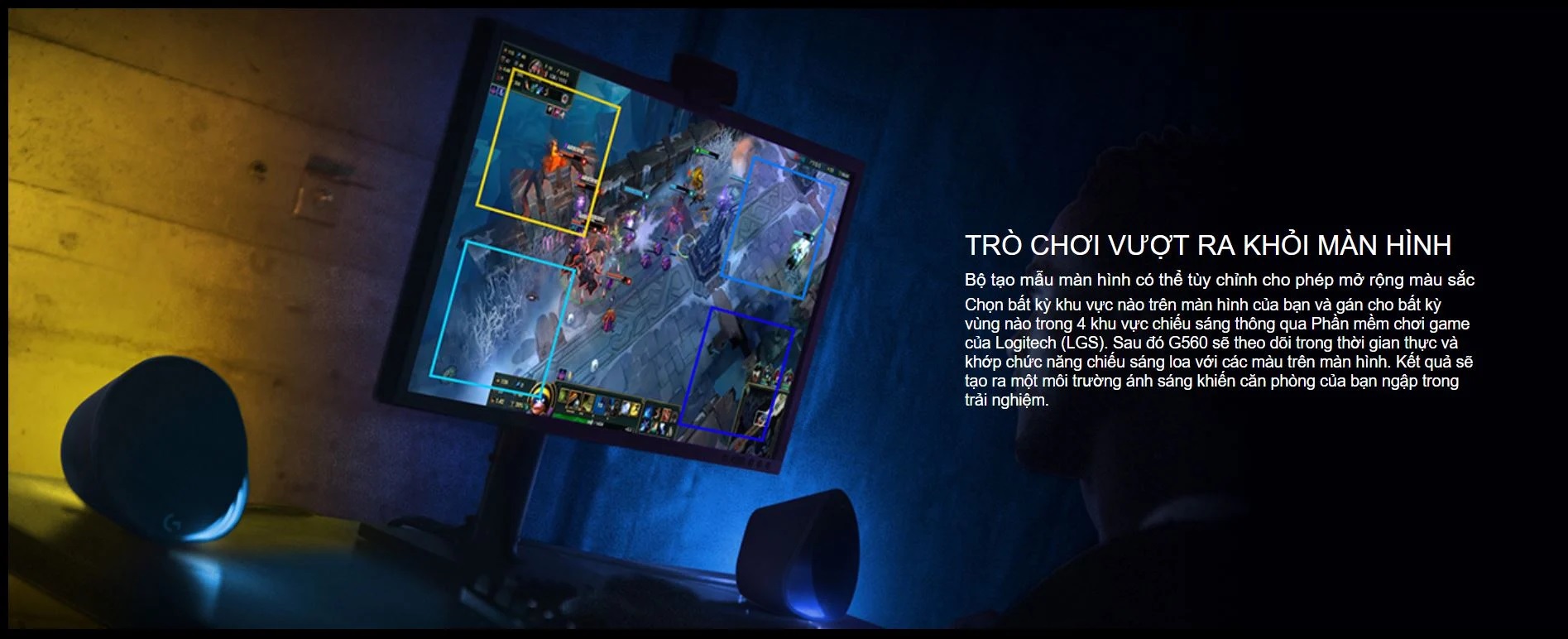Với phần mềm Logitech G HUB, bạn có thể chọn bất kì khu vực chiếu sáng nào trong 4 vùng sau: trái và phải, trước và sau. Thiết bị LIGHTSYNC đọc các màu sắc của pixel trên màn hình, từ đó loa sẽ "trình diễn" một bữa tiệc ánh sáng trong căn phòng của bạn.