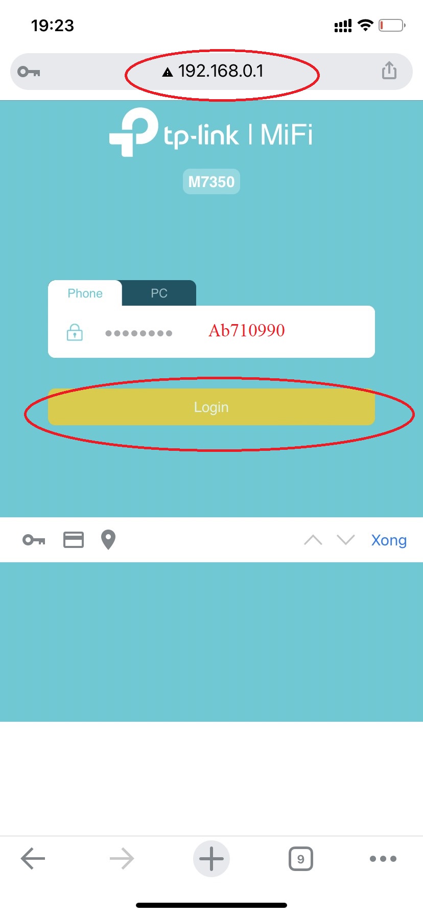 Bước 2: Vào trình duyệt web gõ địa chỉ: 192.168.0.1 và đăng nhập với mật khẩu là Ab710990 sau đó ấn Login để đăng nhập vào quản trị thiết bị.