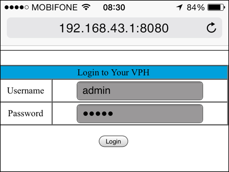 Bước 2: Truy cập vào địa chỉ sau: http://192.168.43.1:8080. Đăng nhập với Username là admin và mật khẩu là admin.