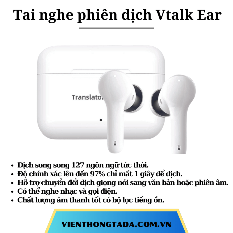 Bạn đang tìm một thiết bị hỗ trợ giao tiếp đa ngôn ngữ hiệu quả và dễ sử dụng? Tai nghe phiên dịch VTalk Ear chính là lựa chọn lý tưởng. Với công nghệ dịch thời gian thực, thiết kế nhỏ gọn, và khả năng hỗ trợ hơn 100 ngôn ngữ, VTalk Ear giúp bạn tự tin trò chuyện với bất kỳ ai trên thế giới.