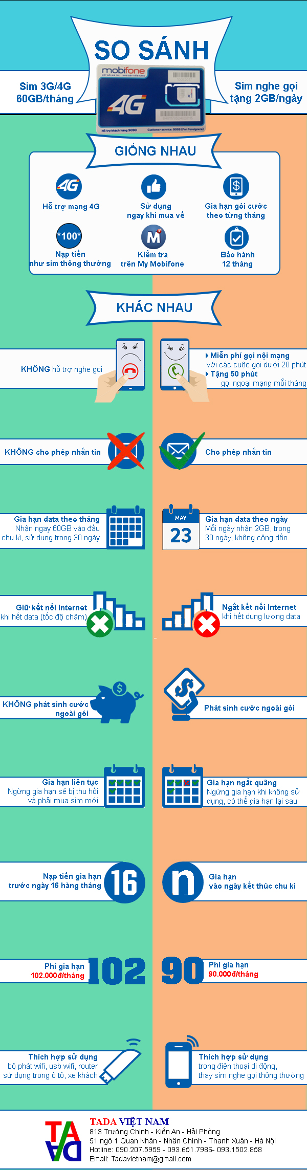 Để giúp khách hàng có thể lựa chọn dễ dàng sản phẩm sim phù hợp, Tada Việt Nam xin chia sẻ những điểm khác biệt giữa 2 sim thông qua infographic sau.