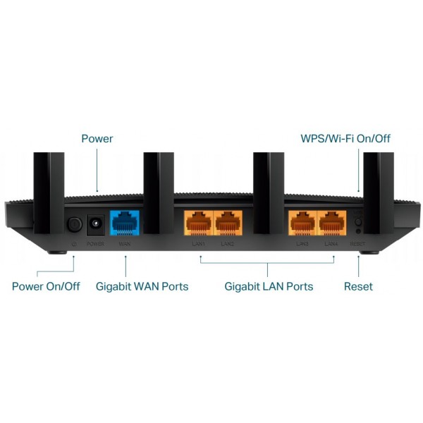 Cổng Ethernet Gigabit (1 WAN+ 4 LAN) mang đến tốc độ kết nối dây cao nhất. Kết nối máy tính, TV thông minh, và máy chơi game của bạn để tận hưởng một kết nối tin cậy tốc độ cao.