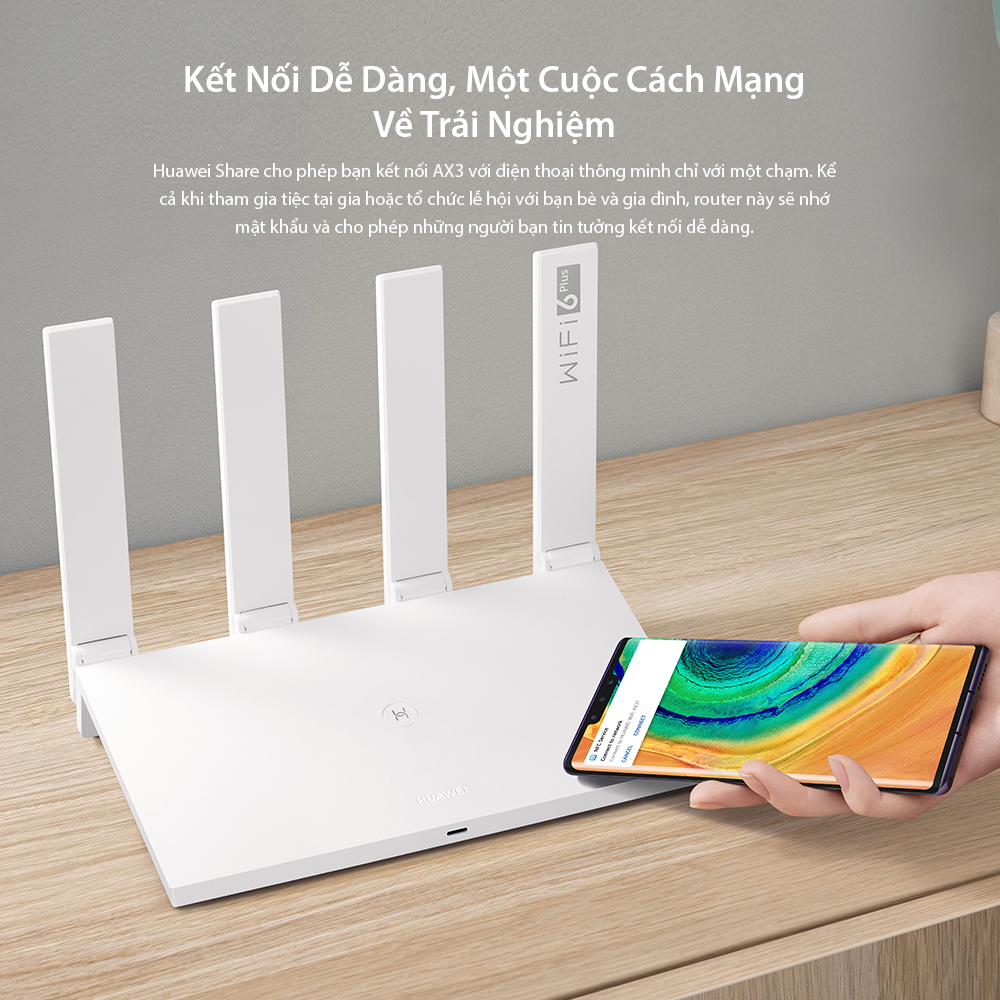 Huawei Share cho phép bạn kết nối AX3 với điện thoại thông minh chỉ với một chạm. Kể cả khi tham gia tiệc tại gia hoặc tổ chức lễ hội với bạn bè và gia đình, router này sẽ nhớ mật khẩu và cho phép những người bạn tin tưởng kết nối dễ dàng.