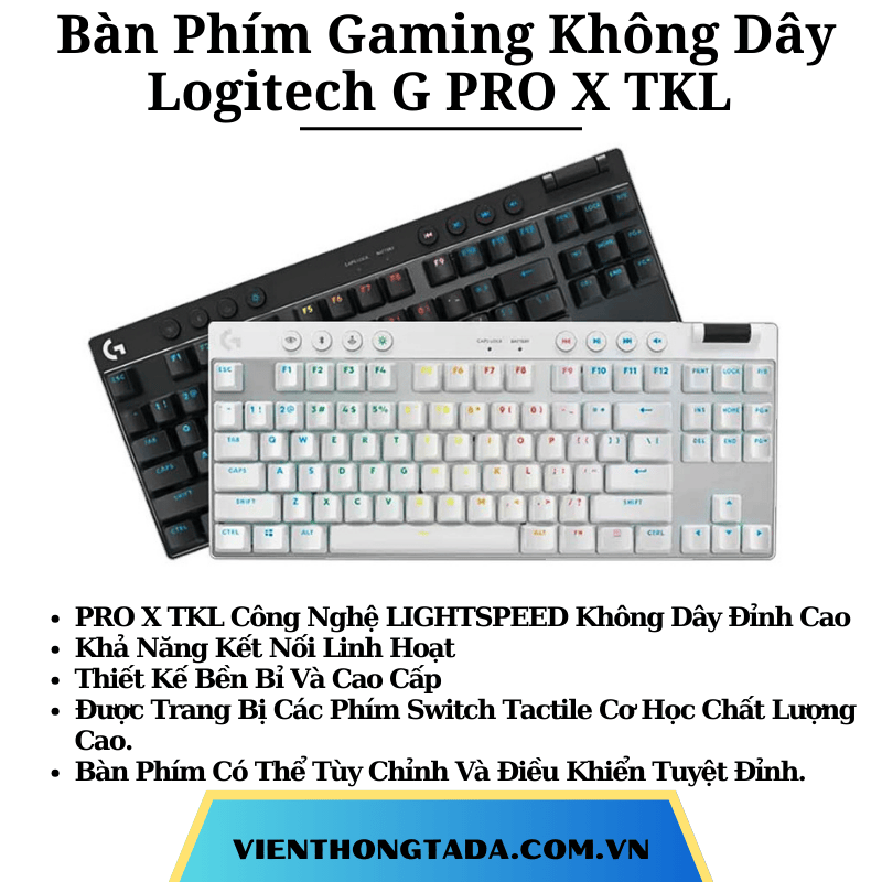 Bàn phím Gaming Không Dây Logitech G PRO X TKL LIGHTSPEED TACTILE RGB MECHANICAL mang lại trải nghiệm hoàn hảo giữa tốc độ ánh sáng và thiết kế tinh tế.