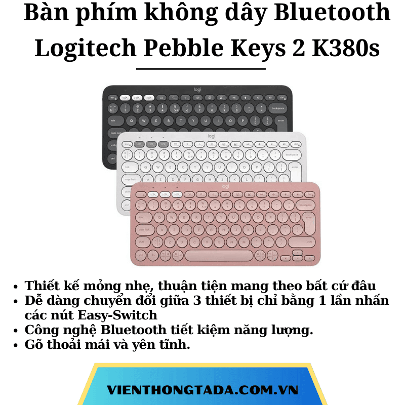 Bàn phím Pebble Keys K380s mỏng nhẹ, dễ dàng mang theo mọi nơi, lý tưởng cho học tập, làm việc và công tác.