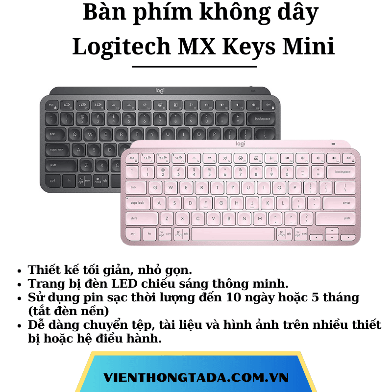 MX Keys Mini là một phiên bản rút gọn 75% của MX Keys huyền thoại, cực kỳ phổ biến tại TADA nhờ sự gọn gàng.